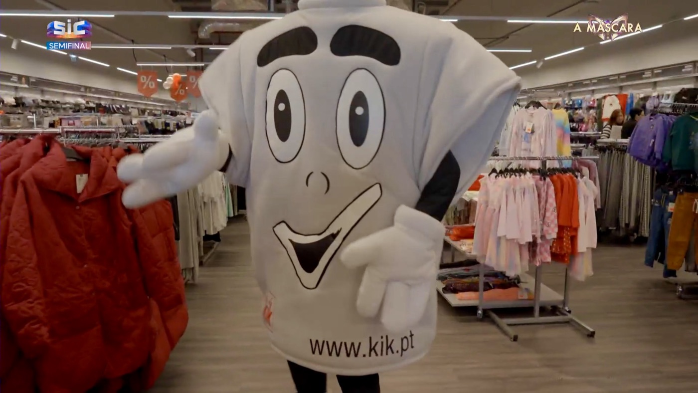 Não passa de uma tshirt mas a mascote das lojas Kik foi hoje uma das convidadas da semifinal do programa A Máscara.